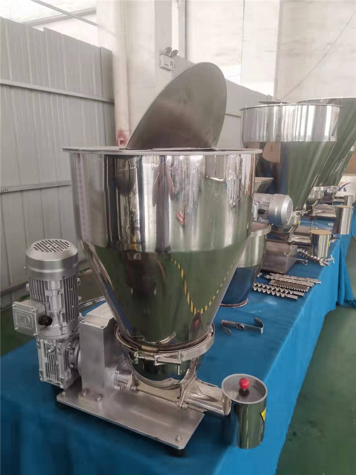 失重式喂料機(jī)由料斗、喂料器(單、雙軸螺旋喂料器)、稱重系統(tǒng)和調(diào)節(jié)器組成,在操作中,料斗、物料和喂料器共同連續(xù)地進(jìn)行稱重。隨著物料送出后,測(cè)量真實(shí)的失重速率,并將它與所需要的失重速率(設(shè)定值)加以比較。通過(guò)調(diào)解喂料器速率來(lái)自動(dòng)修正偏離設(shè)定點(diǎn)的偏值。從而可以均勻準(zhǔn)確地連續(xù)喂送物料。