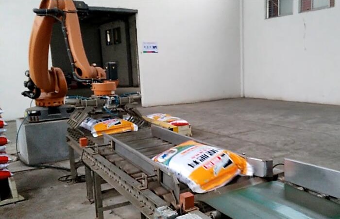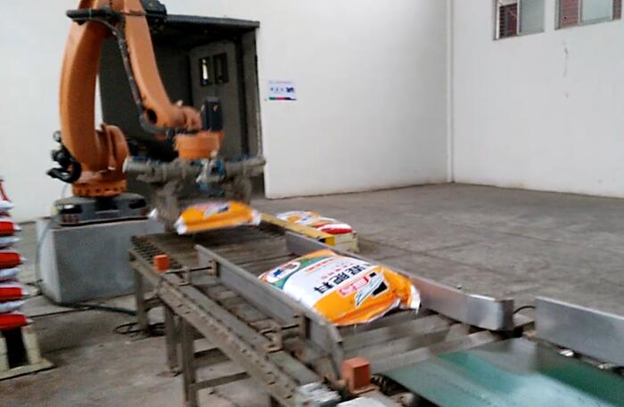 機械手碼垛機可對各種包裝袋、包裝箱進行碼垛,具有堆垛速度快、自動化水平高的特點;碼放時全自動分層編組,自動化程度高;機械手碼垛機模塊化設(shè)計,設(shè)備的穩(wěn)定性高,對托盤的適應(yīng)能力強,只需在觸摸屏上作修改,不影響正常生產(chǎn);機器人本體由質(zhì)量輕、硬度高的高質(zhì)航空合金鋁制作,運行能耗低。